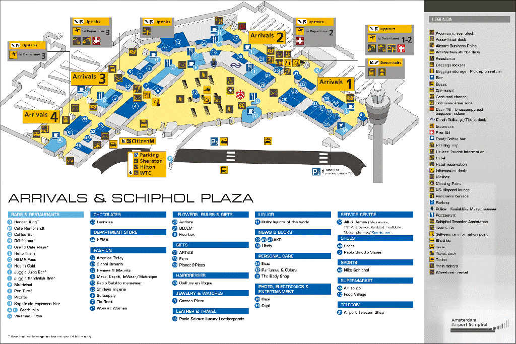 Таким образом, туристов привлекает Схипхол как еще одна достопримечательность нидерландской столицы, которую они могут посетить за символическую цену (от 10-15т.р. из Питера и Москвы, от 23т.р. из Красноярска). Его изюминка состоит в том, что аэропорт представляет собой город с многочисленными ресторанами, магазинами, казино, музеем, библиотекой, спа-салонами, аптекой, отелями, детскими комнатами и игровыми площадками, отелем для животных, банкоматами, центрами связи и бракосочетания, моргом и транспортной развязкой.